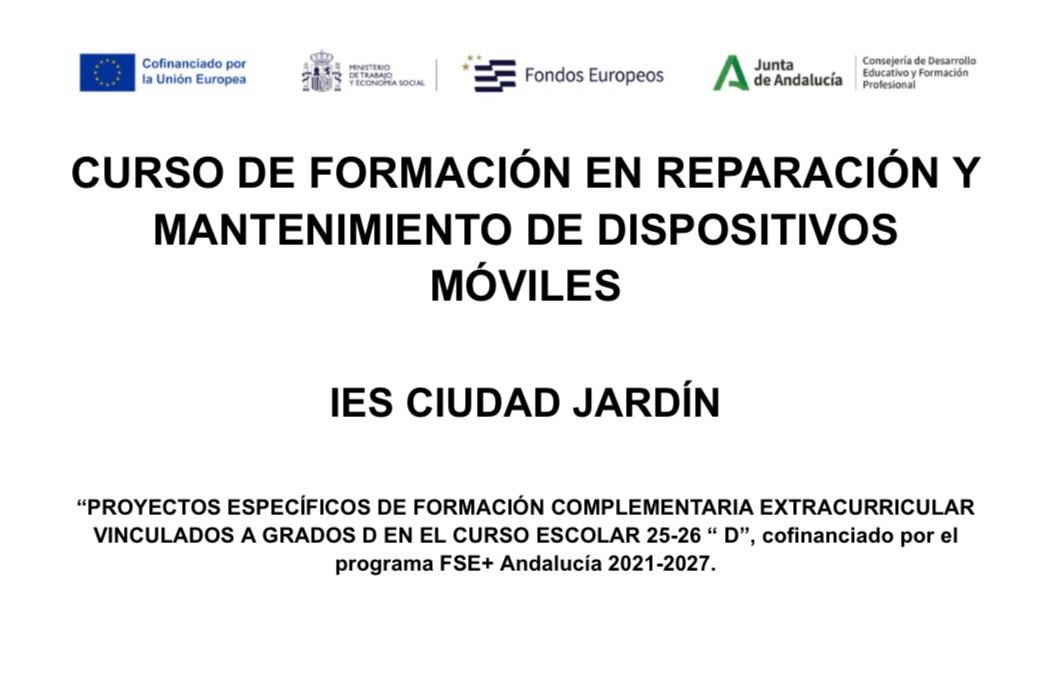 El 24 de marzo comenzó el Curso de formación en mantenimiento y reparación de dispositivos móviles, impartido por la empresa FIX ME MÁLAGA S.L., dirigido a nuestro alumnado de 1º SMR y 1º ASIR del IES Ciudad Jardín.
